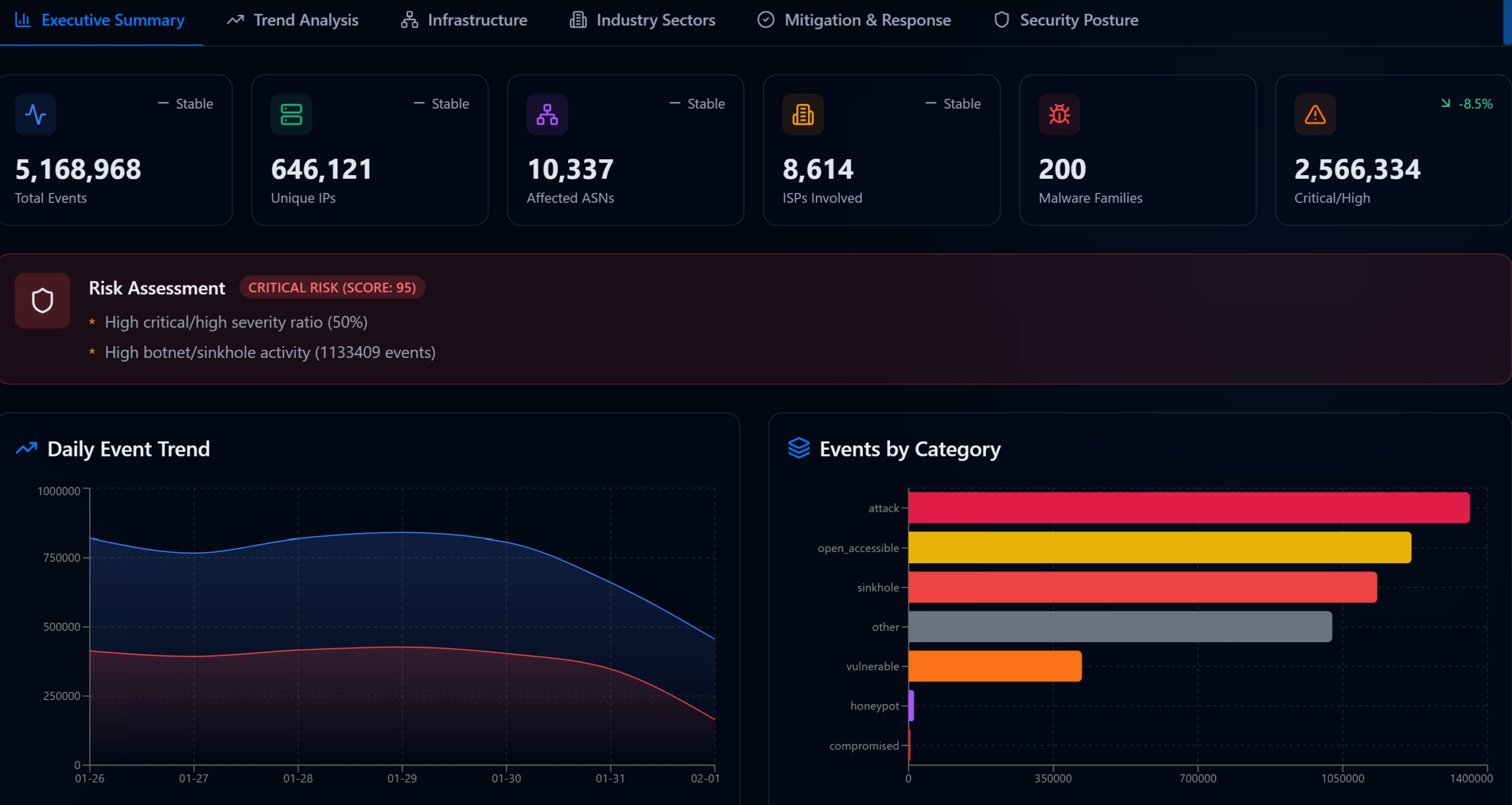 High-volume event handling and rapid infection/campaign visibility.